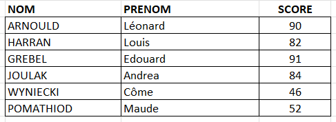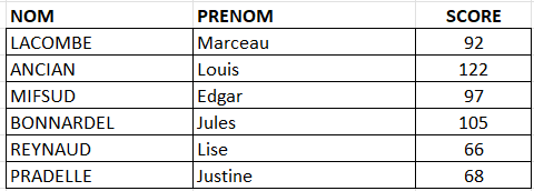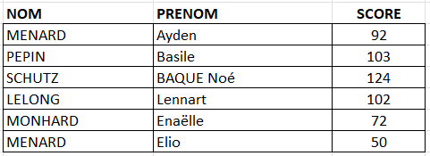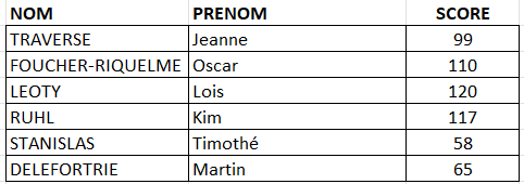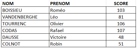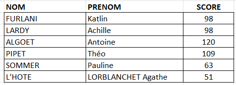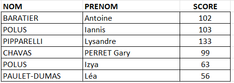 Résultats de la journée